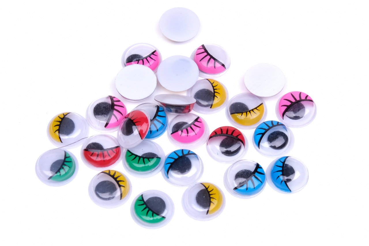 Oči nalepovací s řasemi mix barev průměr 12mm (#104786)