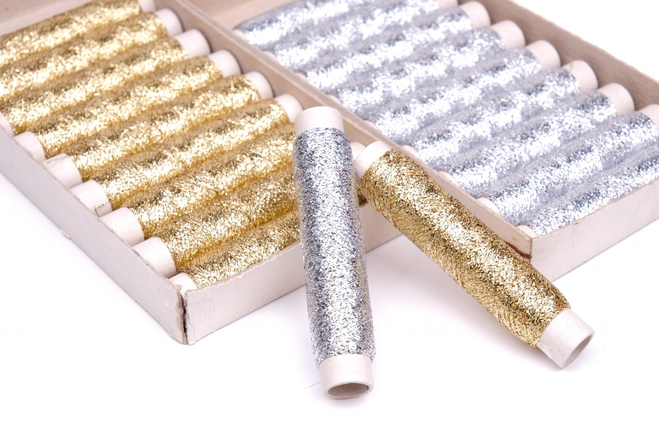 Ozdobná lurexová nit. V návinu po 100m. Baleno po 10ks ve zlaté nebo stříbrné barvě.