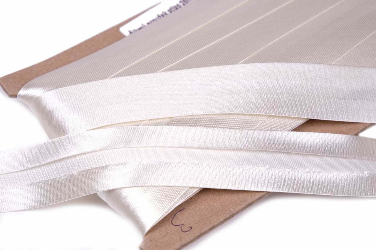 Šikmý proužek atlasový nebo taky saténový je zakládaný do středu, rovnoměrně z obou stran. Je vhodný k olemování lehké dámské konfekce, jemného bytového textilu, záclon, závěsů atd. Alternativní název: šikmý proužek, šikmá stuha zakládaná doprostřed, ozdobná lemovka, ozdobná lemovka lesklá.Složení: 100% polyester.