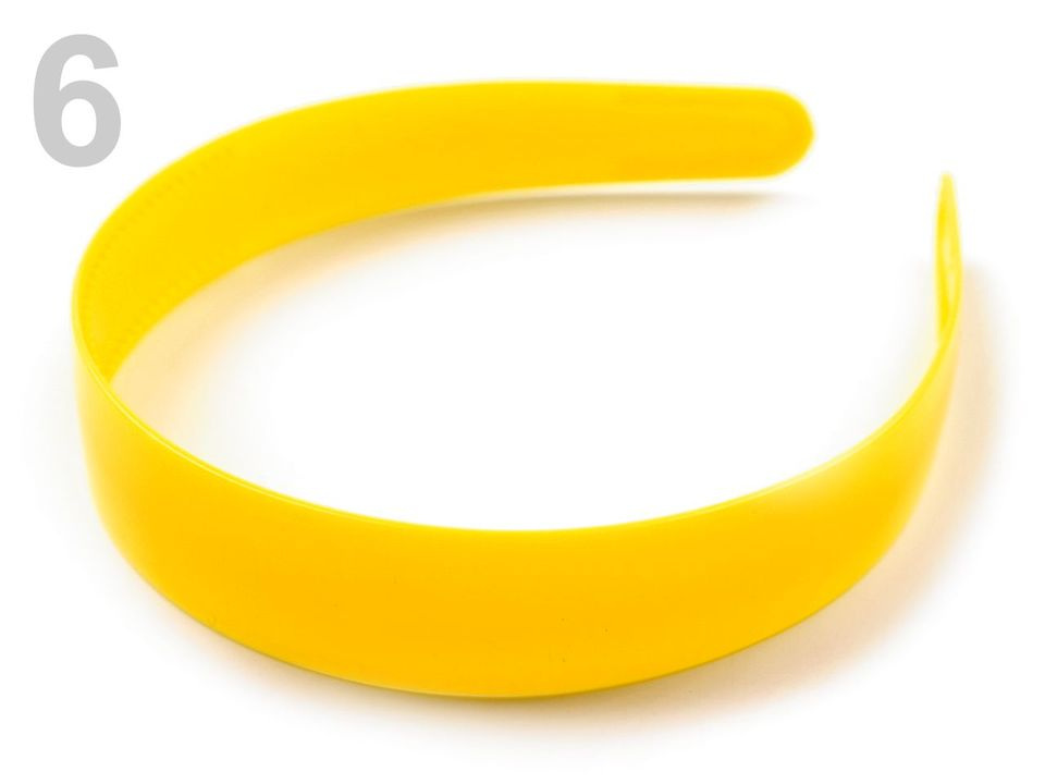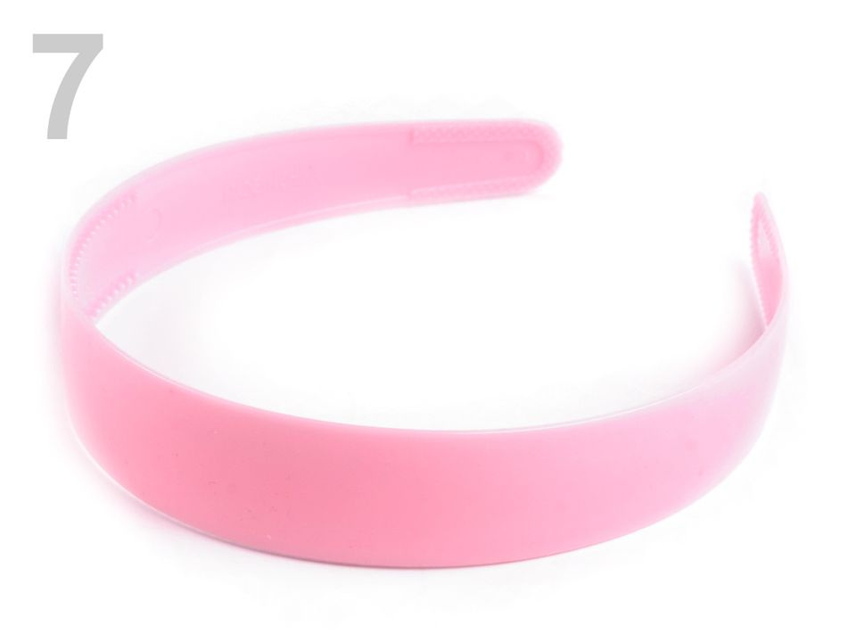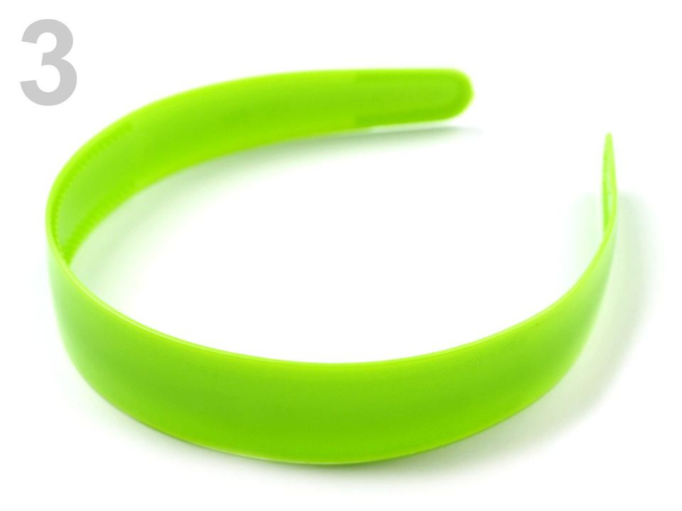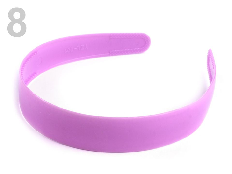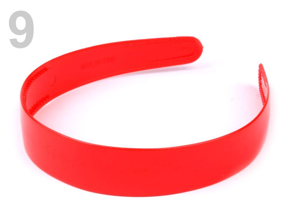 Plastová čelenka o tloušťce 15 - 25 mm. Její obvod je 36 cm a z vnitřní strany je opatřena malými zoubky, které se dokonale uchytí ve vlasech a nedovolí čelence spadnout. Čelenka je k dostání v mnoha zářivých barvách, takže je čistě na vás, které dáte přednost.